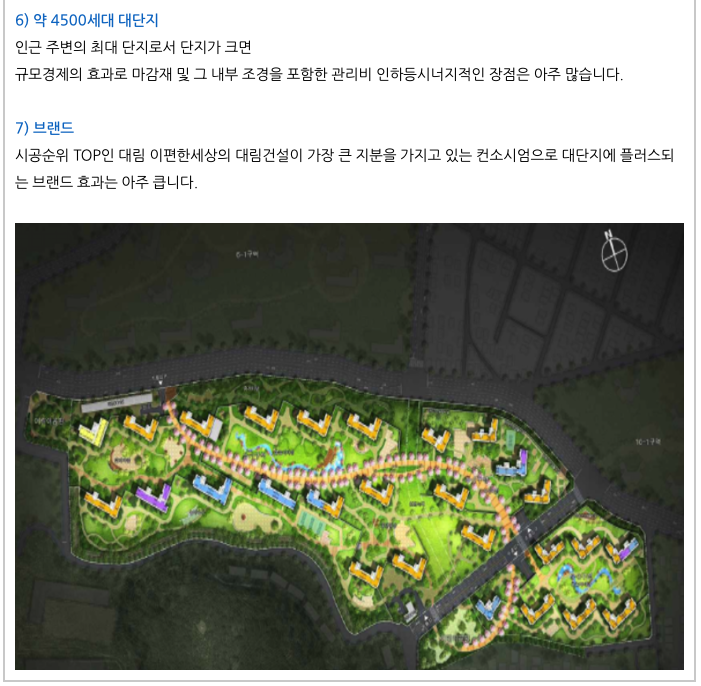 그리고 여러 컨소시엄이긴 하지만 대림 건설의 지분이 높아 대림 이편한세상이라는 선호도 높은 브랜드를 가지게 됩니다.