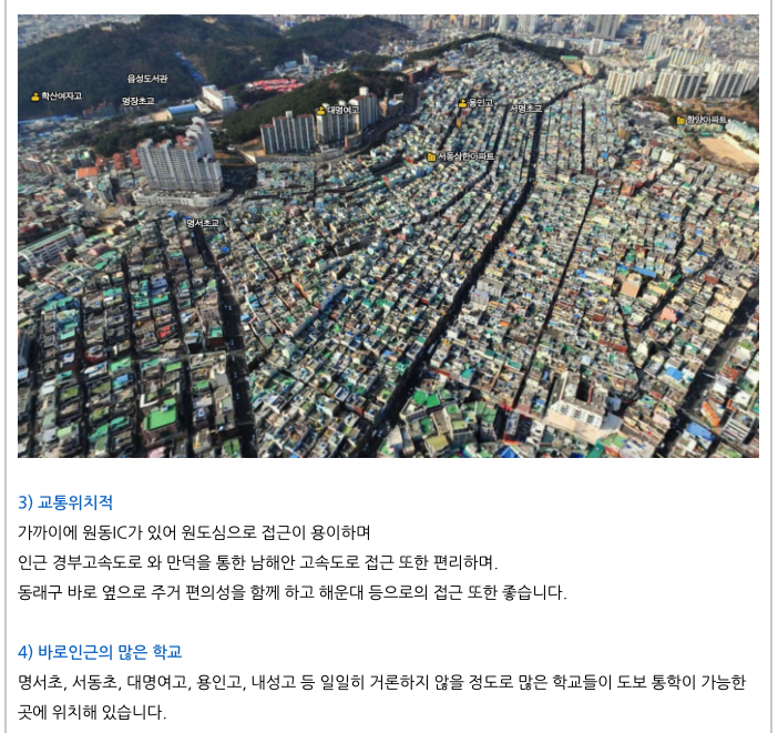 가격이 높지 않다는것은 당연히 그 만한 단점이 있는 것 임을 분명히 인지하셔야만 합니다. - 지하철에서는 꽤 거리가 있고 동네 역시도 조금은 오래되고 낙후 된 곳 입니다. ( 서동역과는 그리 멀지 않습니다만 ) |