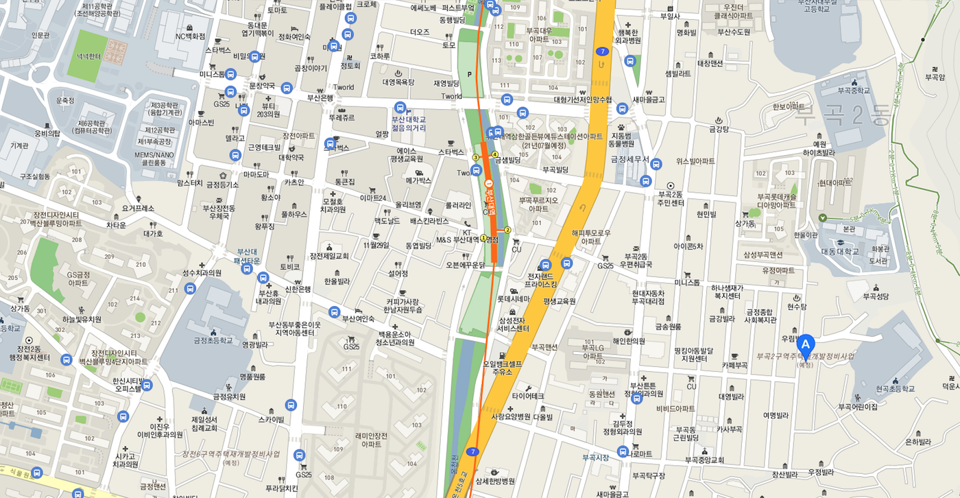 부산대 지하철의 맞은편 부곡동에 위치해 있는 구역으로