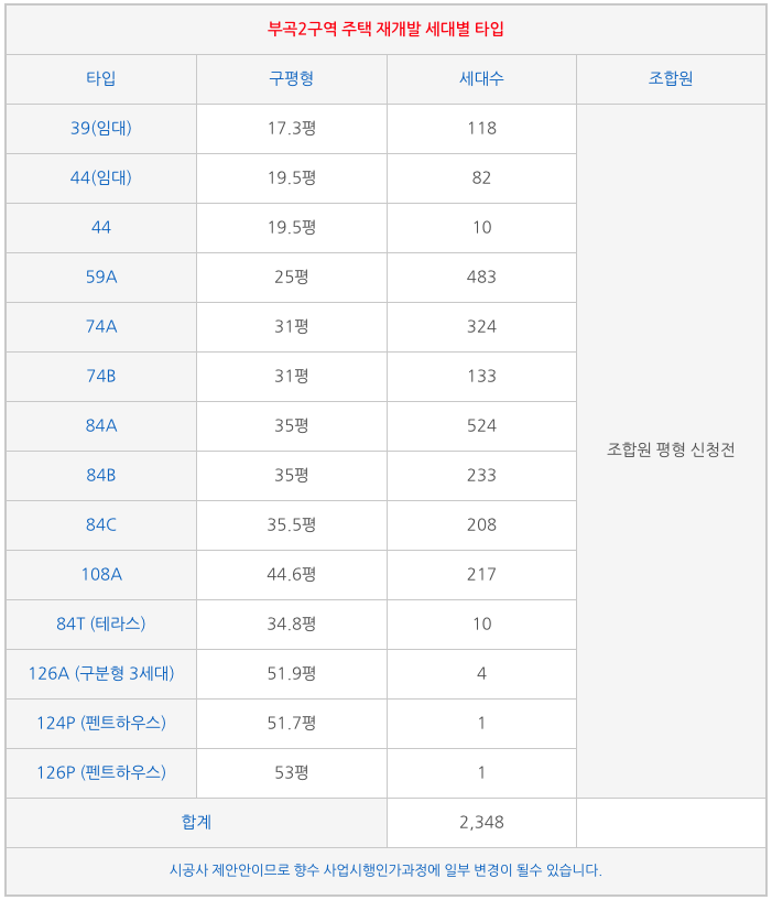 아래 타입별 세대수 등을 참조하시면 됩니다.