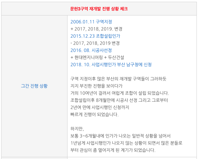 문현3구역 재개발에서 위에 언급한 단점중의 하나 였던 진행 상황을 체크해 드립니다.