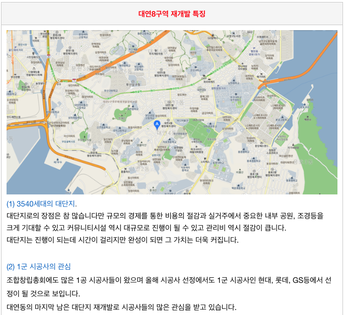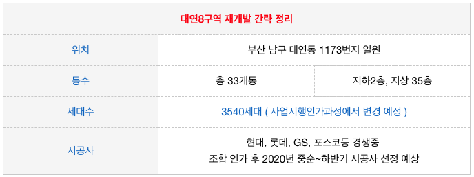 대연동의 현재 재개발 중인 대연3구역 그리고 대연4구역 에 이어 마지막으로 진행이 되는 곳인 데다