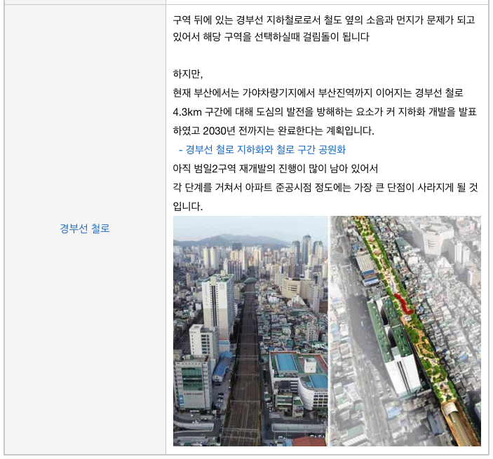 부산 철도 지하화 역시 계획되어 있고 해당 철로가 공원화가 되면 더 큰 장점으로 돌아오게 될 것입니다.