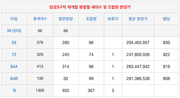 엄궁3구역은 전체세대수에 조합원 숫자가 상대적으로 많이 않아 현재의 비례율인 103%에서