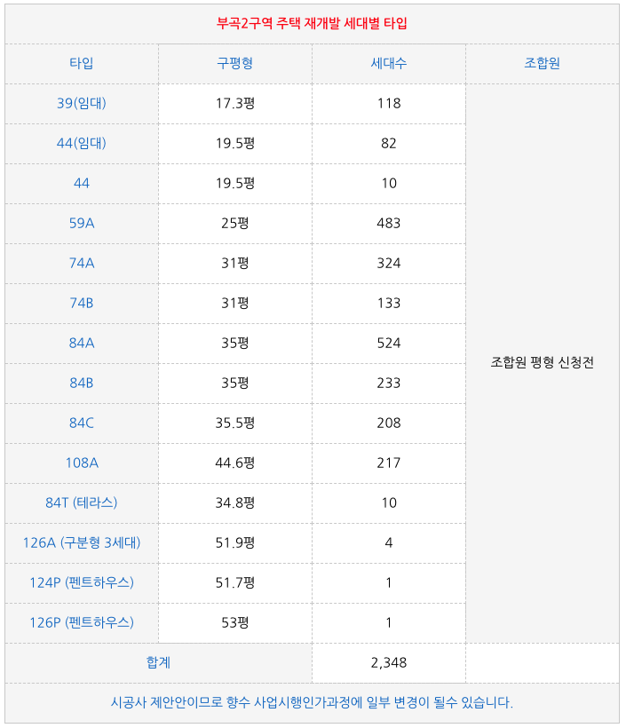 시공사 제안인이기는 하지만 조합원 숫자 그리고 84이상 타입수등을 고려 하면 84타입은 조합원 분들께서는 무난하지 않을까 예상됩니다.