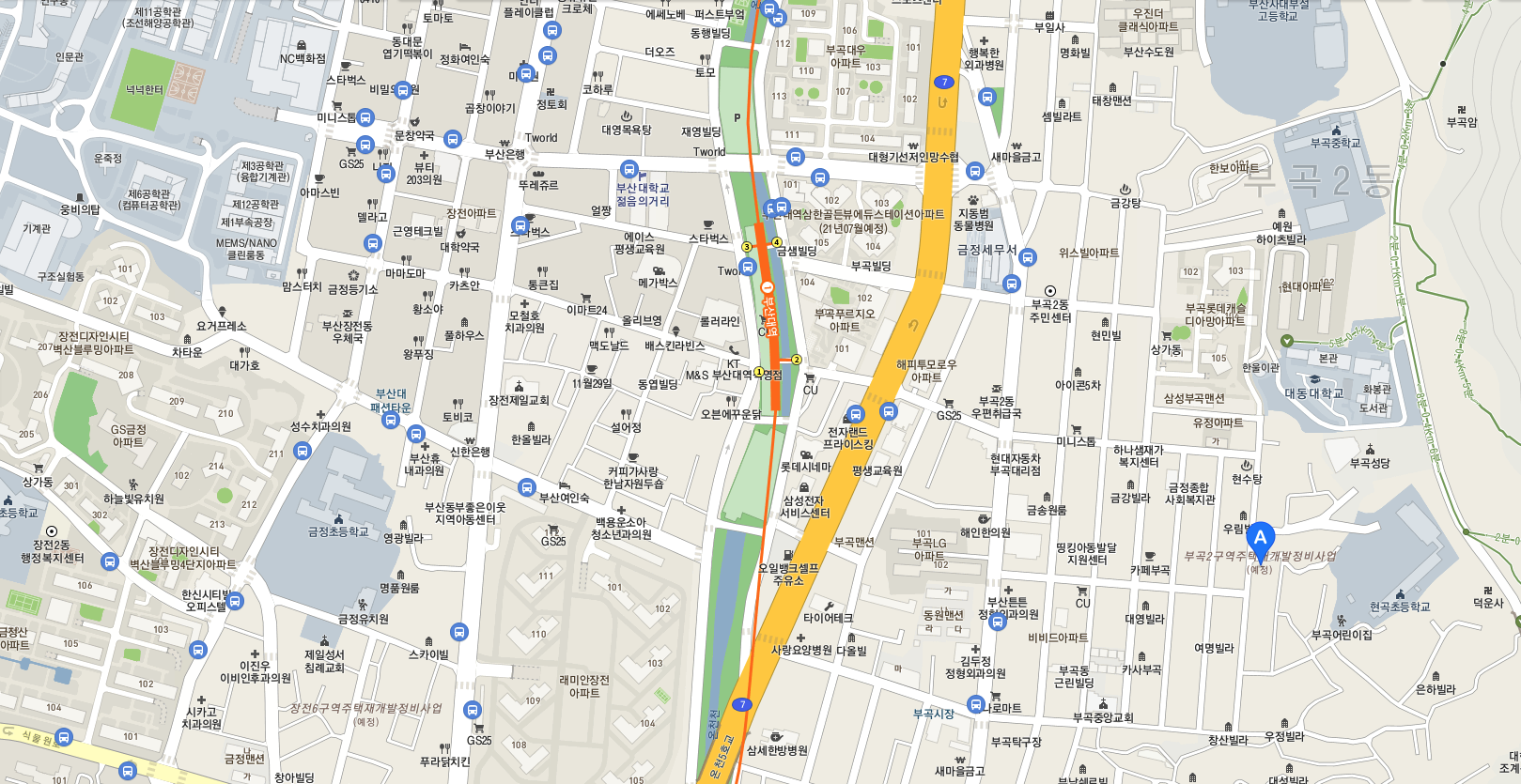 부산대역 맞은편의 윤산을 뒤로 둔 부곡동의 지역이며 생활 반경은 부산대 상권 전체를 이용하실 수 있는 곳입니다.