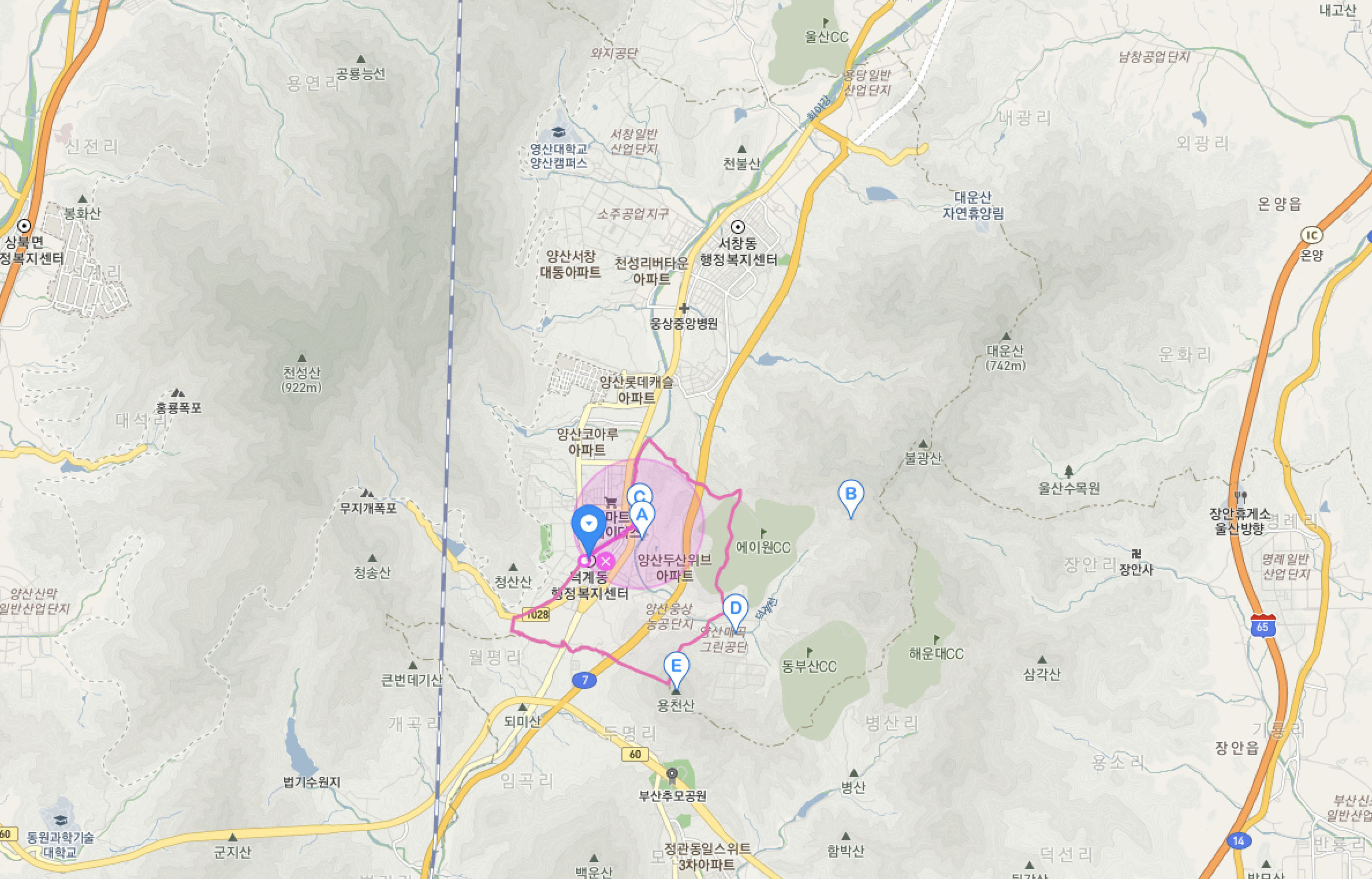 부산과 울산을 연결하는 가운데 위치 하고 있습니다.