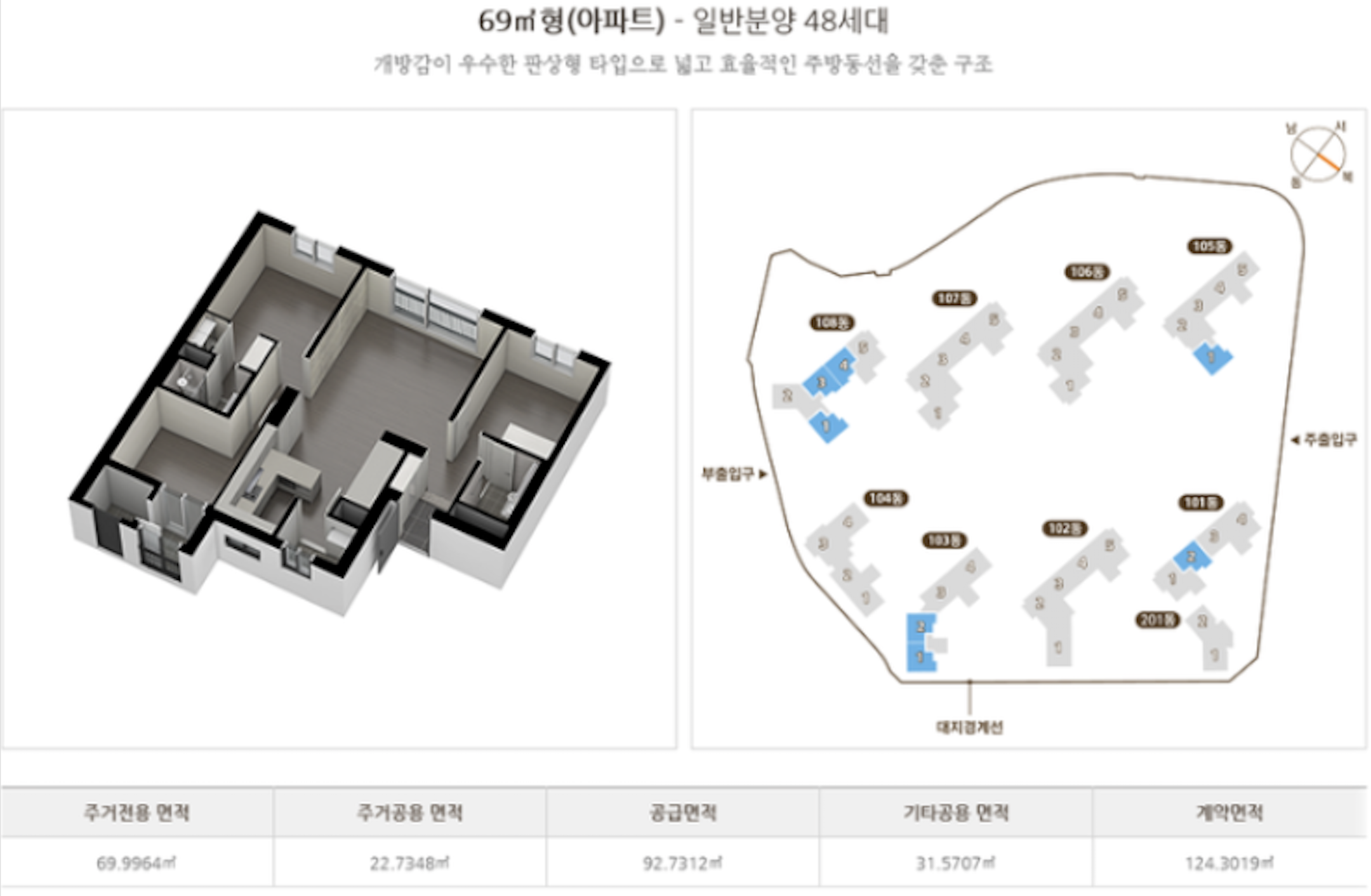 전체 1050세대에서 오피스텔 52세대가 있고 일반 분양분은 224세대 밖에 되지 않습니다.