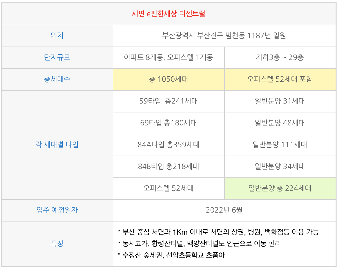 서면이편한세상 더센트럴 물건 정보 |