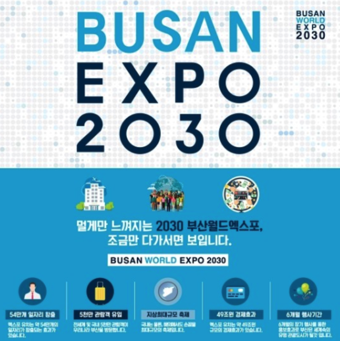 국가 지정 사업으로 진행되기에 탄력을 받아 유치를 하게 된다면 2030년 월드 엑스포가 부산 북항 일대에서 개최를 하게 됩니다.