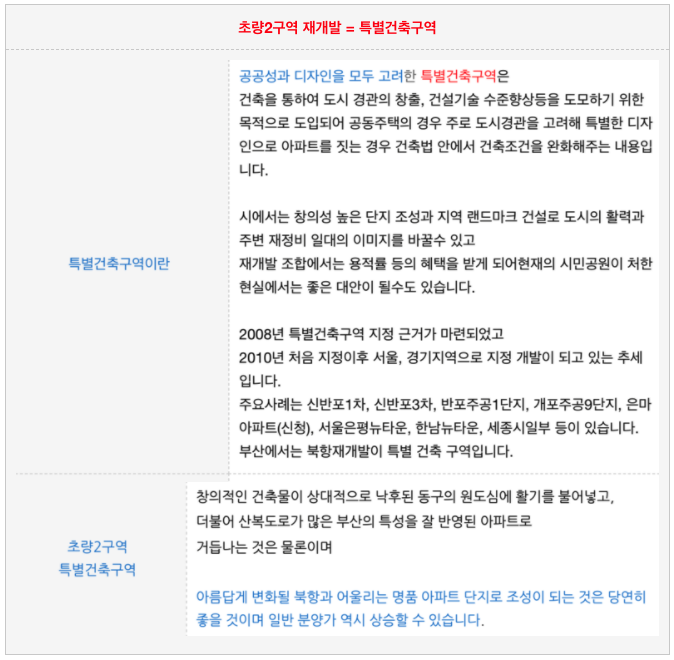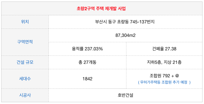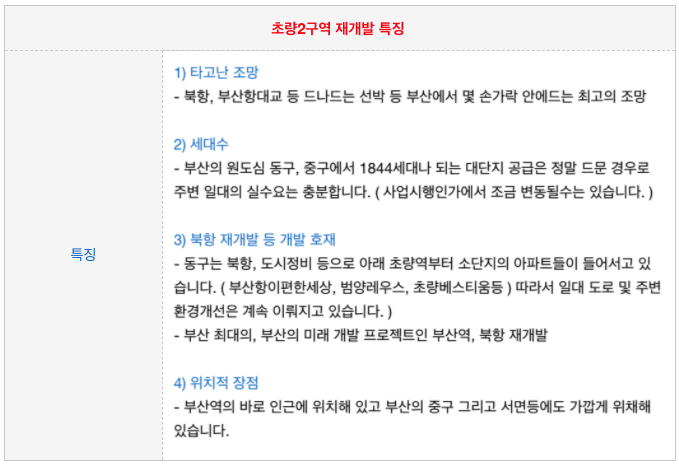 초량2구역 주택 재개발의 간략한 특징입니다.