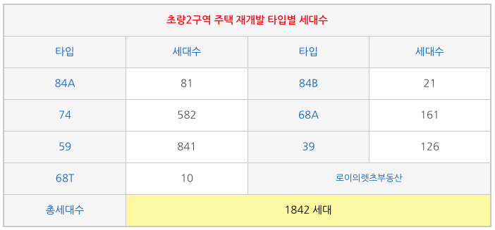 초량2구역 주택 재개발의 타입별 세대수입니다.