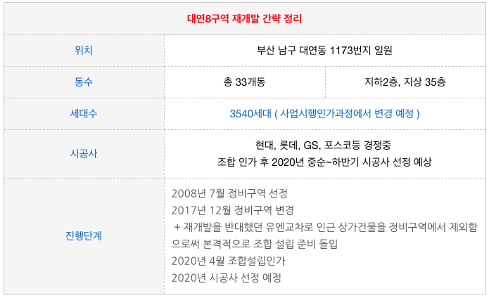 대연8구역 재개발의 특징을 간략히 정리해 드립니다.