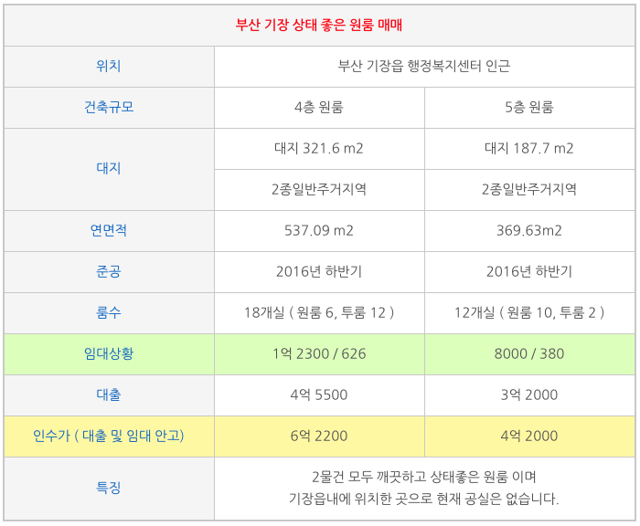 부산 기장 오시리아 인근 원룸 통 매매