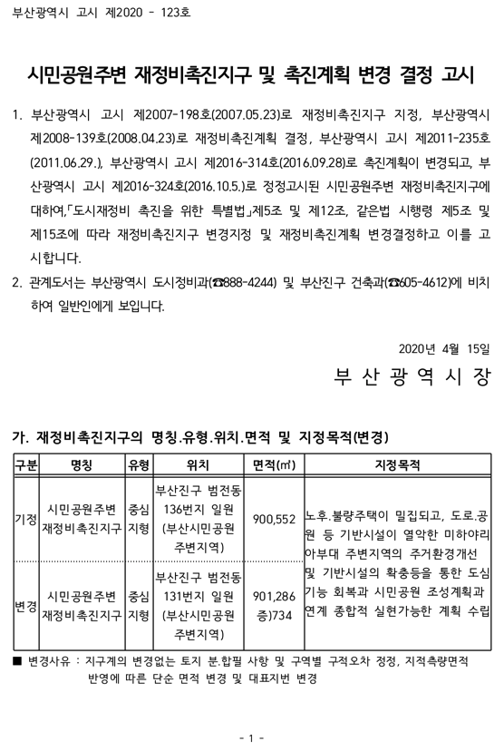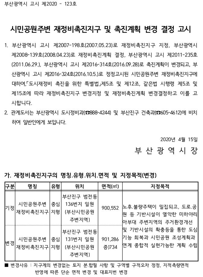 전체 시민공원주변 재정비 촉진지구에 대해 변경 결정고시를 통해 정리를 한번 했다고 생각하시면 됩니다.