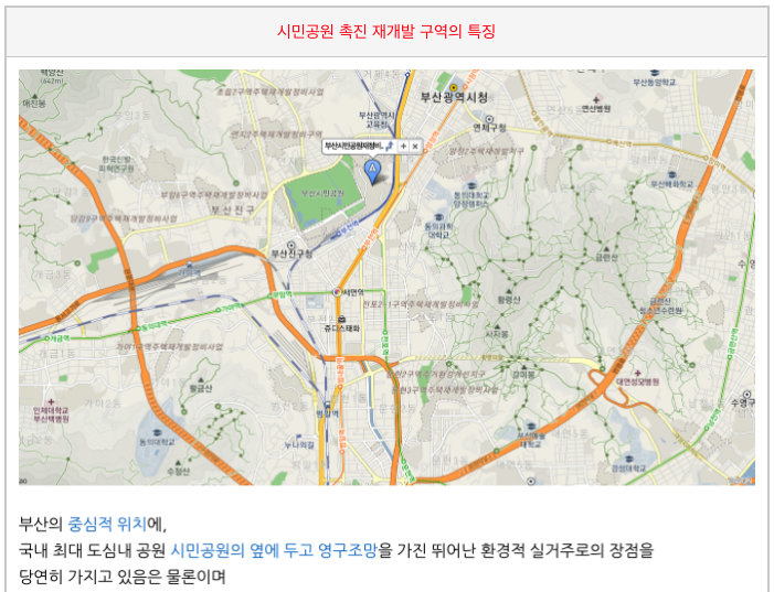 시민공원 촉진 재개발 구역의 특징을 간력히 소개해 드립니다.