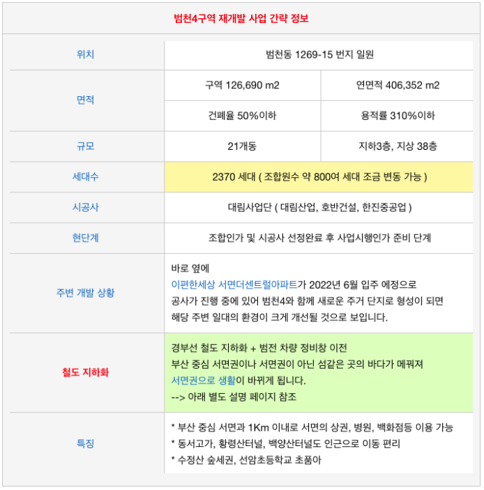 범천4구역 재개발에 관심이 있으신 분들은 연락주시면 자세히 설명드리겠습니다.