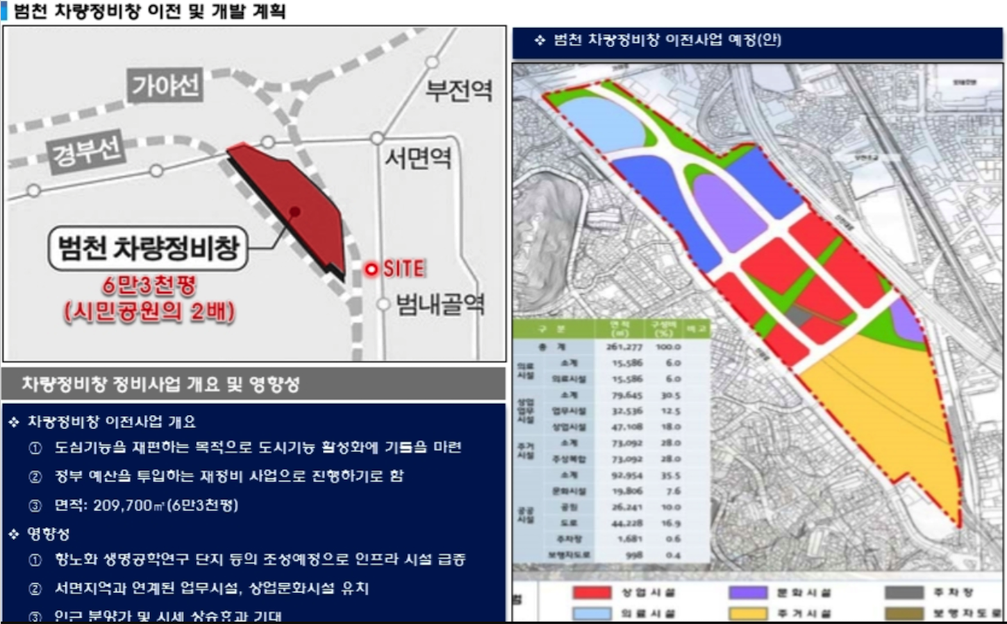차량 지하화와 차량 정비창 이전에 대해 간략히 설명드리겠습니다.
