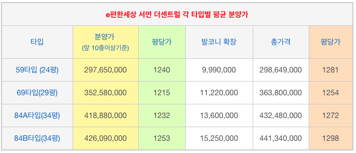 이편한세상서면더센트럴의 가격 착한 84타입 물건과 69타입 물건을 소개해 드립니다.