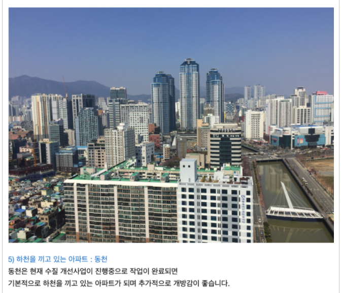 옆의 동천강으로 인해 개방감이 좋으며