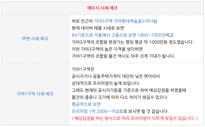 가야3구역인 가야롯데캐슬골드아너를 같이 설명드릴수 밖에 없어 간단한 비교 드리오니 참고하시면 됩니다.