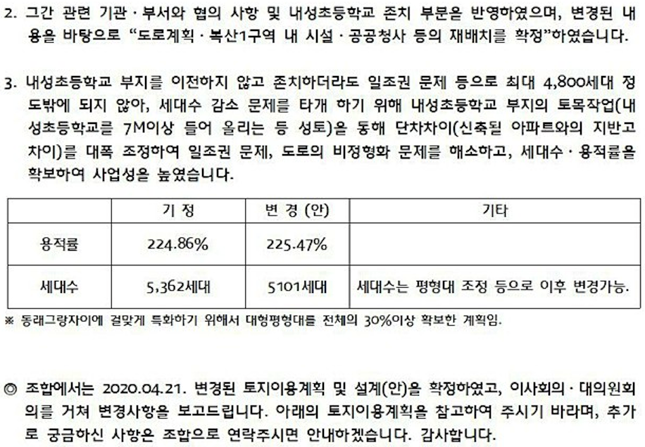 최근 조합 측에서는 총 세대수 5101세대 + 대형평형 30%