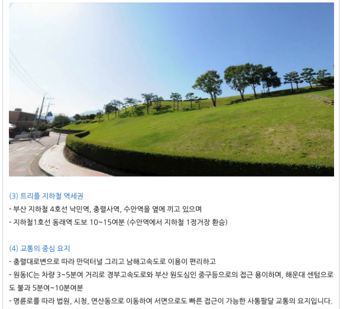 향후 아파트 단지내의 커다란 자연 녹지 공간(고분군)이 존재하는 미래가 기대가 되는 아파트 입니다.