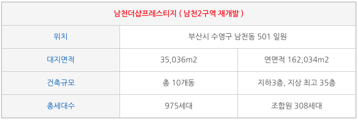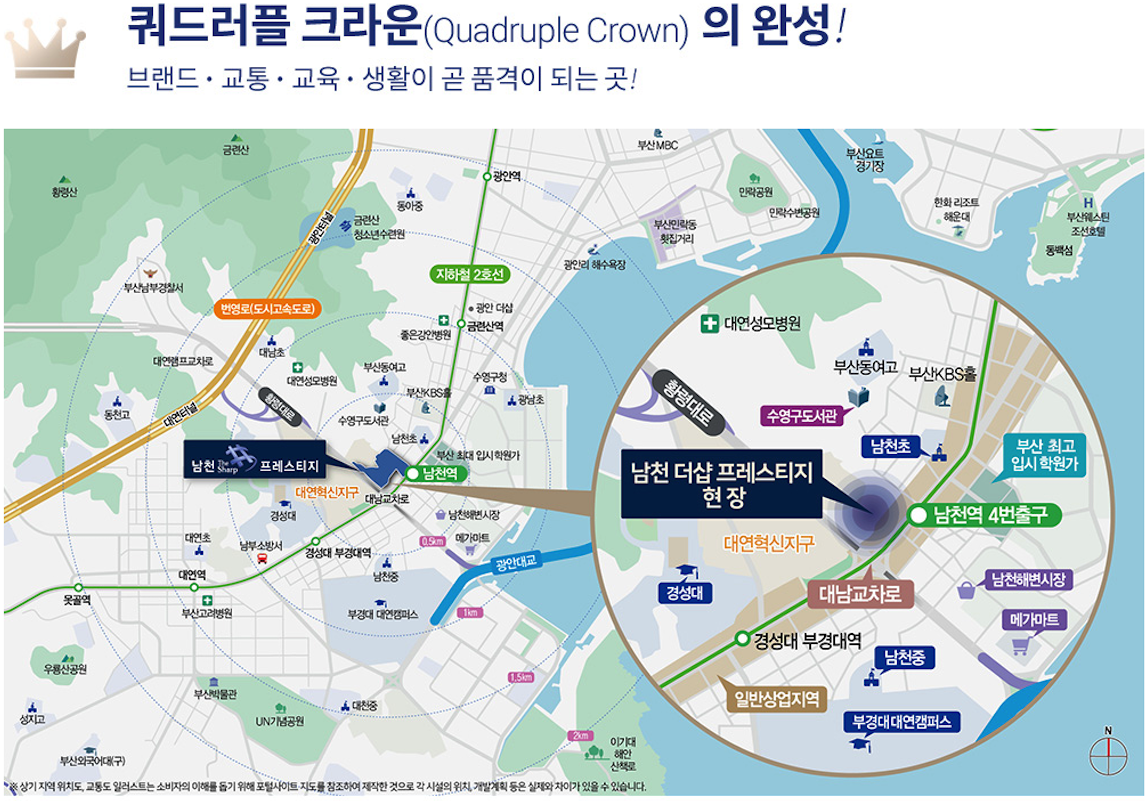 전통적인 주거 부촌인 남천동에 위치해 있으며 부산지하철 2호선 금련산역의 역세권 아파트로 많은 분들의 관심을 가지고 있습니다.