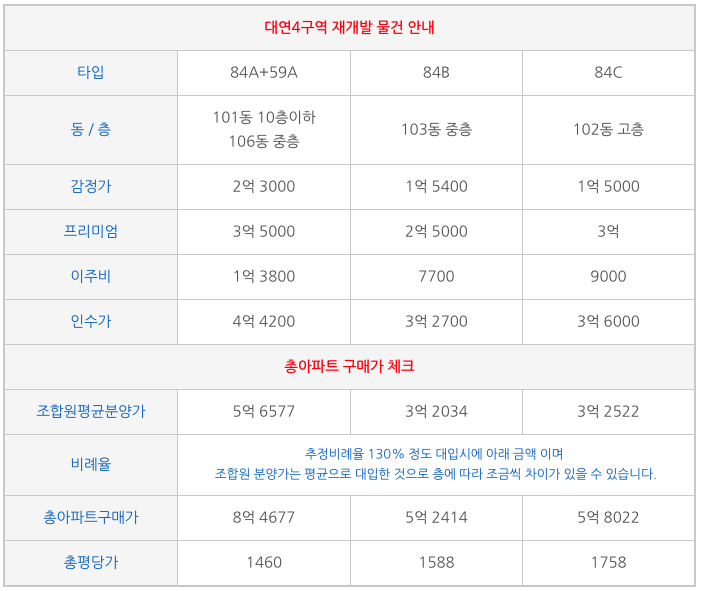 현재 대연4구역의 추정비례율은 130%로 얘기가 되고 있어서 일정 정도의 감정가가 있는 것이