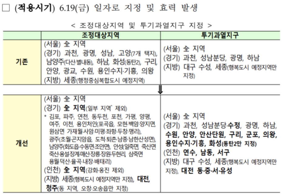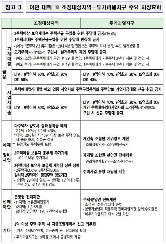 3) 조정대상지역 및 투기과열지구로 지정시 효과