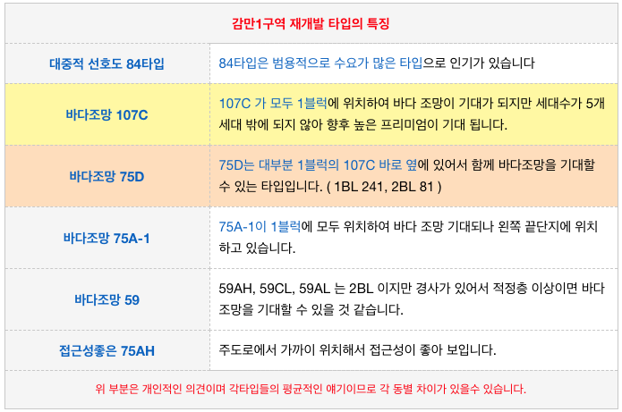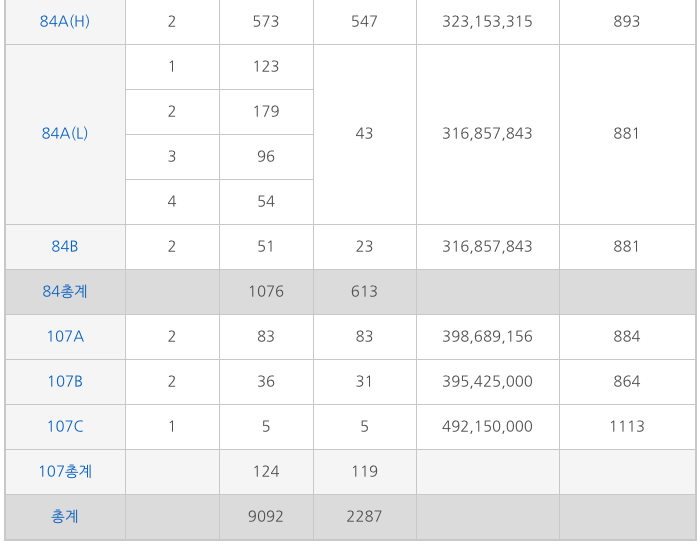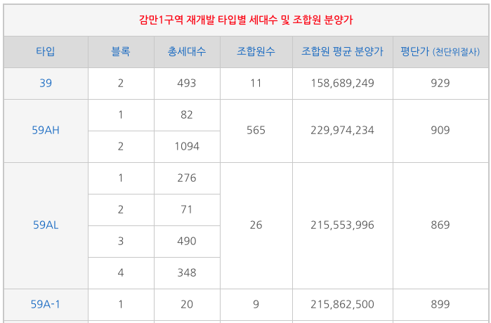 아래 각 타입별 조합원 세대수와 각 블록별 세대수를 한번 같이 체크해 보시면