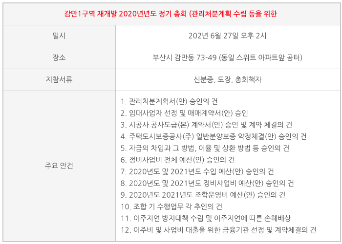 감만1구역 재개발 관리처분계획수립을 위한 총회
