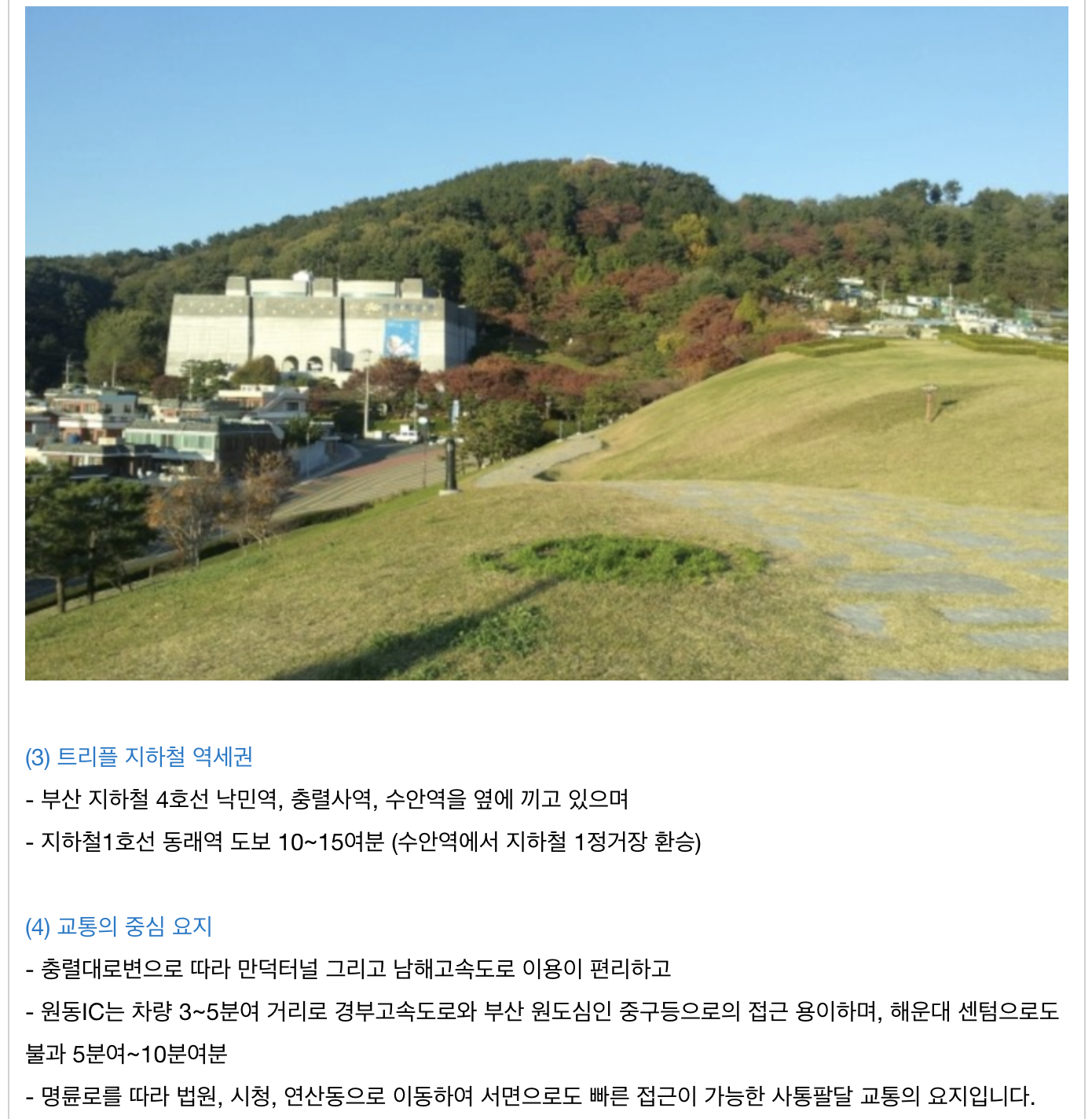 실주거에서의 큰 강점을 가지고 있는 동래구 에서의 최대 단지이며 동래시장과 동래 구청이 옆에 있고