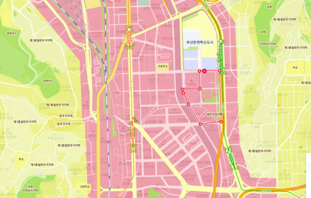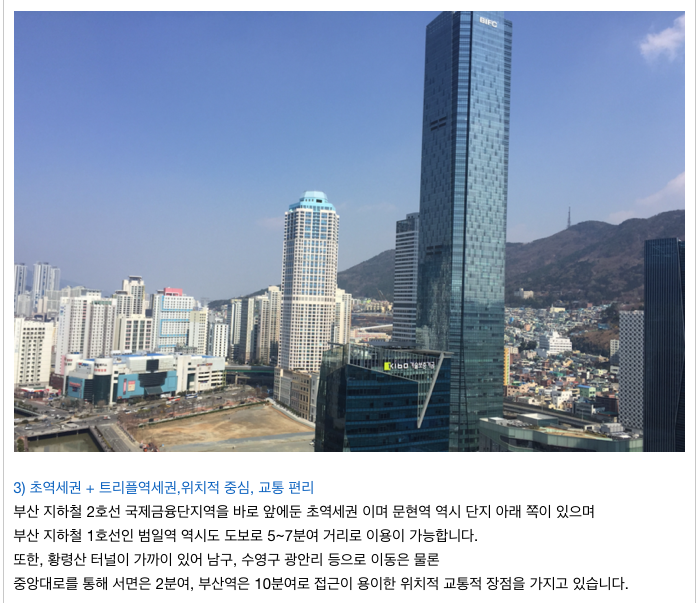 부산 중심 도심지의 역세권 평지로 그 위치적 장점으로 높은 평가를 받고 있는