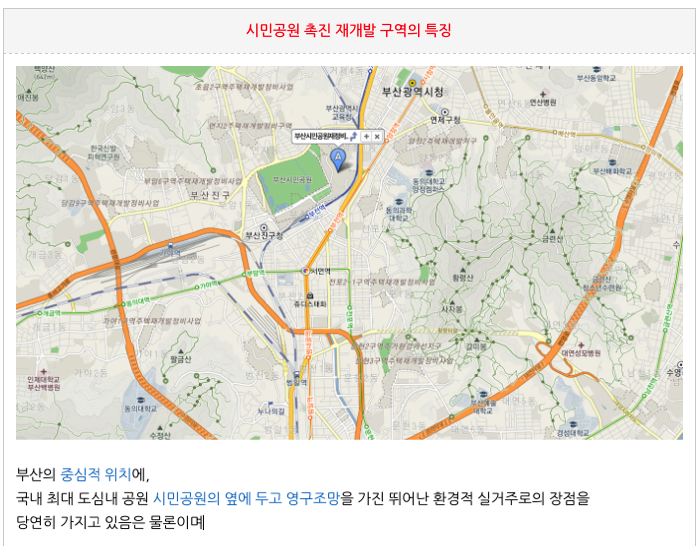 시민공원 촉진3구역의 특징을 간력히 소개해 드립니다.