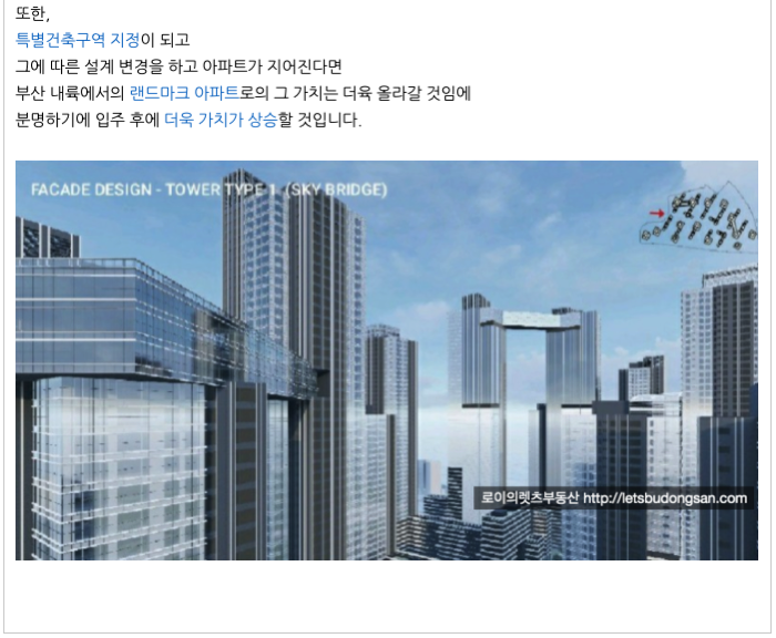 부산 재개발의 대장주로 불리우며 시세가 이미 다소 높아 장기적으로 고려하여 진입이 필요합니다. 투자금액 역시 작지 않게 필요합니다. (한줄 포인트) 미래가치 좋은 장기 우량주 |
