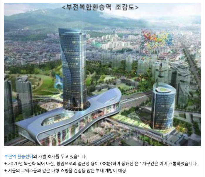 부산의 중심적인 자리에 위치해 있어서 부산 전역으로의 이동이 용이하며 부전역 환승센터 등 여러 개발호재가 있으며