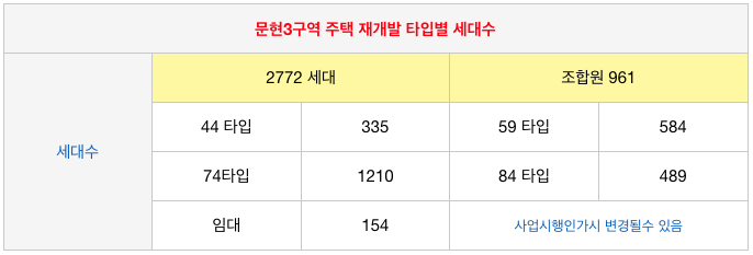 문현3구역 재개발의 타입별 세대수는 아직 미정입니다.