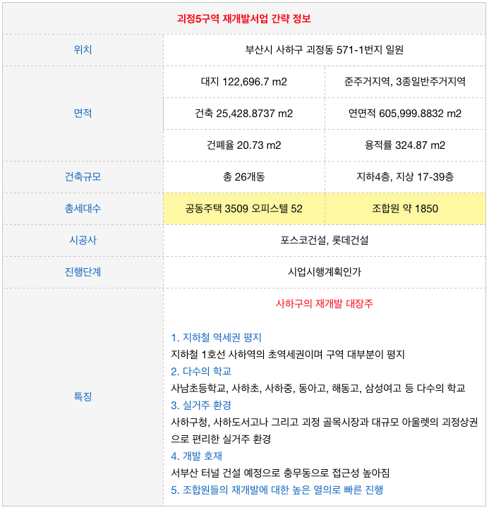 괴정5구역 재개발에 관심이 있으신 분들은 연락주시면 자세히 설명드리겠습니다.