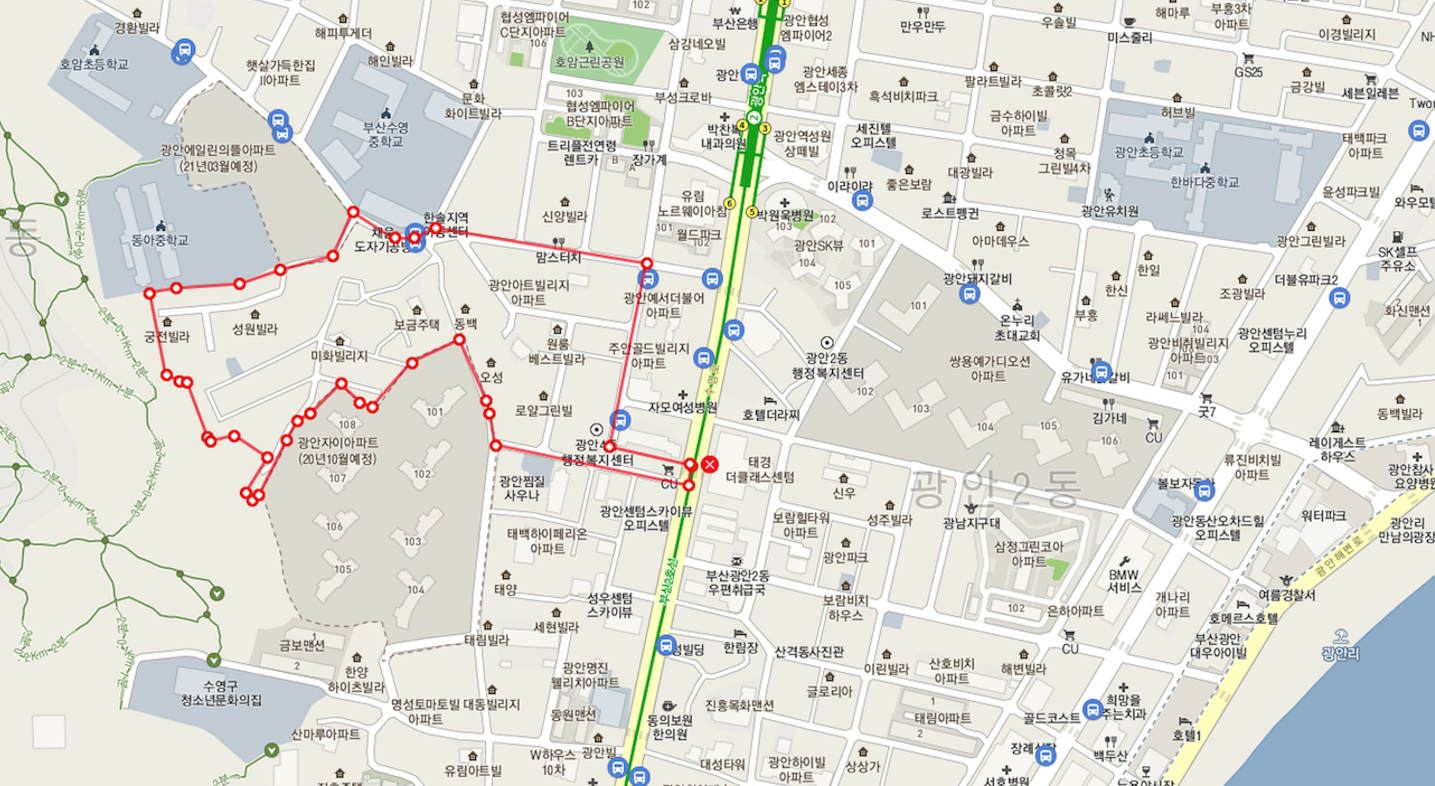 상대적으로 수영로의 윗쪽부분은 조용한 주거지역으로 자리를 잡고 있었습니다.