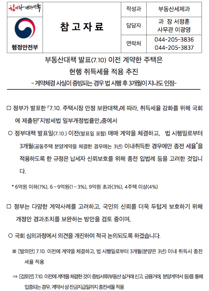 부동산대책 지방세법 시행령 개정안 입법 예고