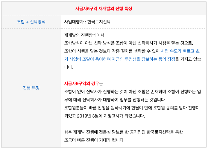 다른 재개발과 특이하게 신탁방식을 함께 취하고 있습니다.