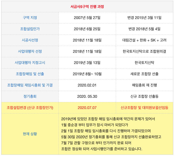 2020년 5월 신규 조합장 선출까지 완료가 되면서 다시 재개발 진행이 정상화가 되었습니다.