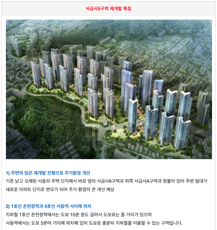 서금사5구역 재개발의 현재 가능 물건을 소개해 드립니다.