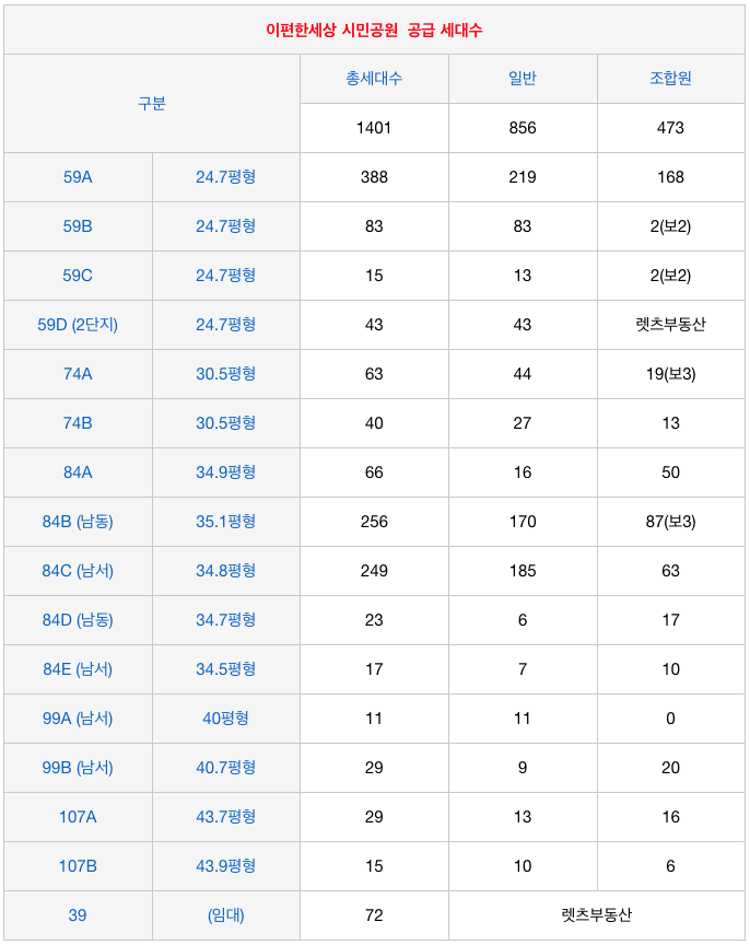 전체 1401세대로 구성이 되고 그중 856세대가 일반분양이 되었습니다.
