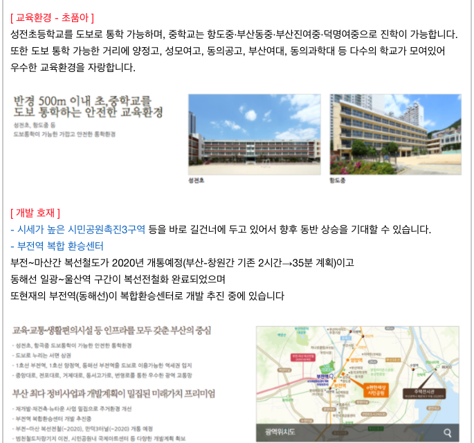 부산지하철 1호선 부전역의 준역세권 (도보 5~7분여) 그리고 여러 개발호재들을 가지고 있는 곳으로