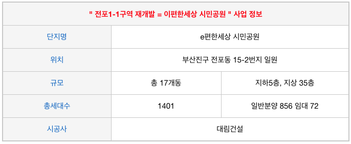 전포1-1구역 재개발 = 이편한세상 시민공원에 관심이 있으신 분들은 연락주시면 자세히 설명드리겠습니다.