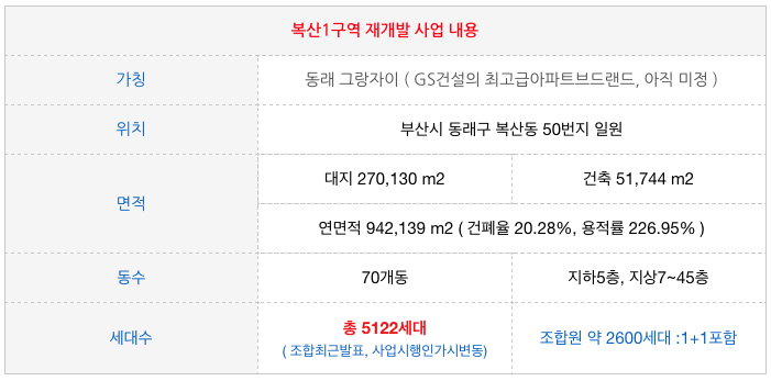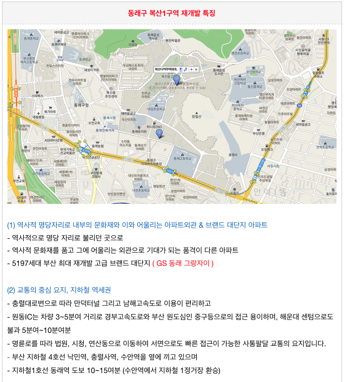 동래구 복산1구역 재개발의 특징을 간략히 정리해 드립니다