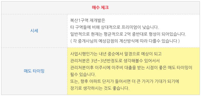꾸준히 문의가 있는 동래구의 복산1구역 재개발 물건을 소개해 드리겠습니다.