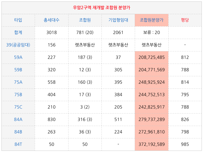 위에서 언급 드린 것처럼 향후 진행에 따라 조합원 분양가가 일부 변경이 될 수도 있습니다.